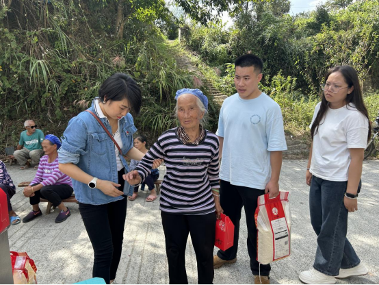 活动中,王筑山及实践队队员与杨志胜亲切交流,了解其工作情况,对其吃苦耐劳、甘于奉献,积极投身乡村振兴,助推贵州乡村发展表示肯定。周巧明为高表村高龄老人送去米、油、月饼以表示双节慰问。捐赠活动后,实践队员为村里的老年人进行了基本体格检查,介绍高血压等老年慢性病的防治及注意事项。