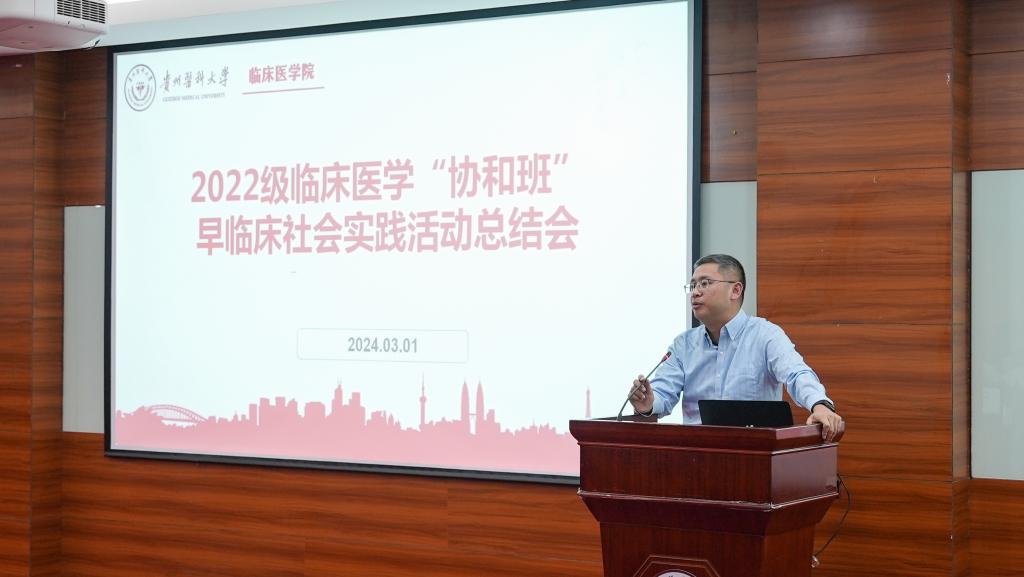 李海洋对同学们在早临床社会实践中的学习表现给予肯定,并通过事例分享,强调作为医护工作者,要以厚德载物的人文精神于细节处修仁爱之心。要知敬畏,知其可为知其不可为,才能在大有可为的时代大有作为。他希望同学们明确目标,团结协作,勤学不倦,笃行不怠,医者仁心,胸怀天下,将个人的理想追求融入党和国家事业发展的大局中,以真才实学服务人民,成长为国家栋梁之材,为祖国医药卫生事业的发展和人类身心健康奋斗终身。
