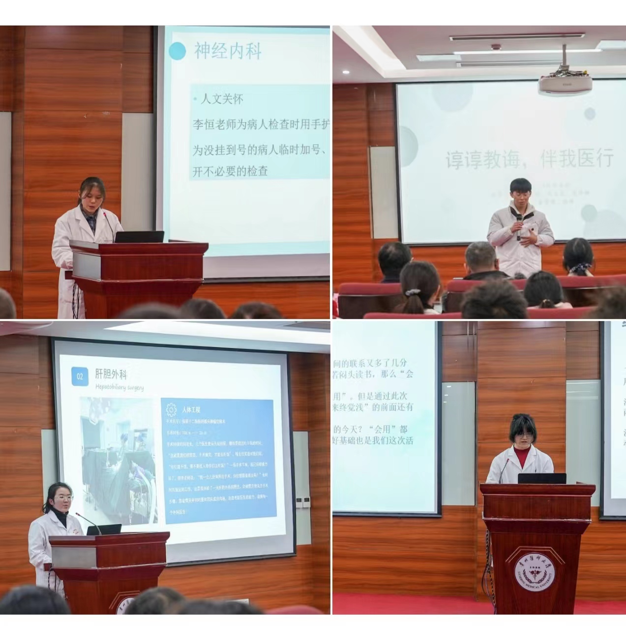 戚璐期望同学们在今后的学习中,有意识主动加强基础和临床、理论与实践的结合,提升自己临床分析能力,并在学习和实践中不断增强职业认同感,以“悲悯、专注、自省”三个品质要求自己,谦逊做人,踏实做事,勇于担当责任和使命。王念雪强调团队协作、基础知识和早临床实践的重要性,鼓励同学们积极思考,不断扫除知识盲区,提高自身人文素养。杨婷要求每位同学遵守医疗法规和伦理道德,充分发扬医学人文精神,关爱患者,为患者做好服务。