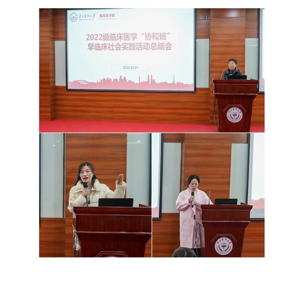 会上,同学们分成四组以PPT形式对早临床社会实践活动进行交流汇报。同学们表示,参加本次早临床实践受益匪浅。整个过程严谨、充实,充分展现了2022级“协和班”团结友爱、乐学善思、感恩奋进的精神风貌,得到与会领导和各位老师的高度肯定。