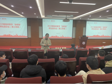 生产实习科对三月份即将进行的临床技能考核的相关工作安排及规定做了布置,并对同学们的实习纪律再次进行了强调,教学管理科介绍了“协和班”培养方案的修订工作,希望同学们能够对课程建设、教学进度安排、实践教学等方面提出宝贵的修改意见。