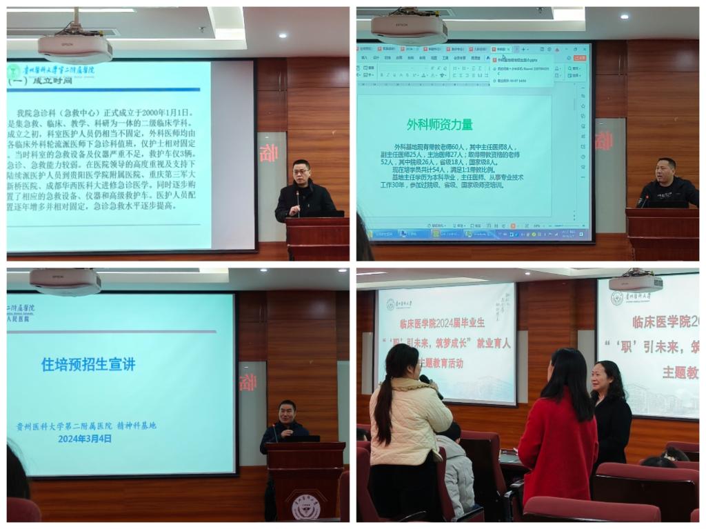 为深入贯彻落实访企拓岗促就业专项工作,拓宽员工就业渠道。3月7日,学院邀请333体育官网第二附属医院副经理杨喆、各科室负责人一行到333体育官网北校区开展了住培招收宣讲会。学院员工科科长李莉、本科生毕业班辅导员及2024届毕业生参加本次宣讲。会议由公司党委副书记桂晓玲主持。