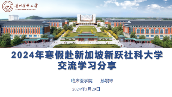 赴新加坡社会科技大学短期交流的2022级儿科专硕研究生肖群、孙嫚彬从新加坡城市规划、风土人情、文化背景进行了出发前背景介绍,背景介绍后以出发前准备、学习经过、心得体会几个部分进行心得交流和分享。