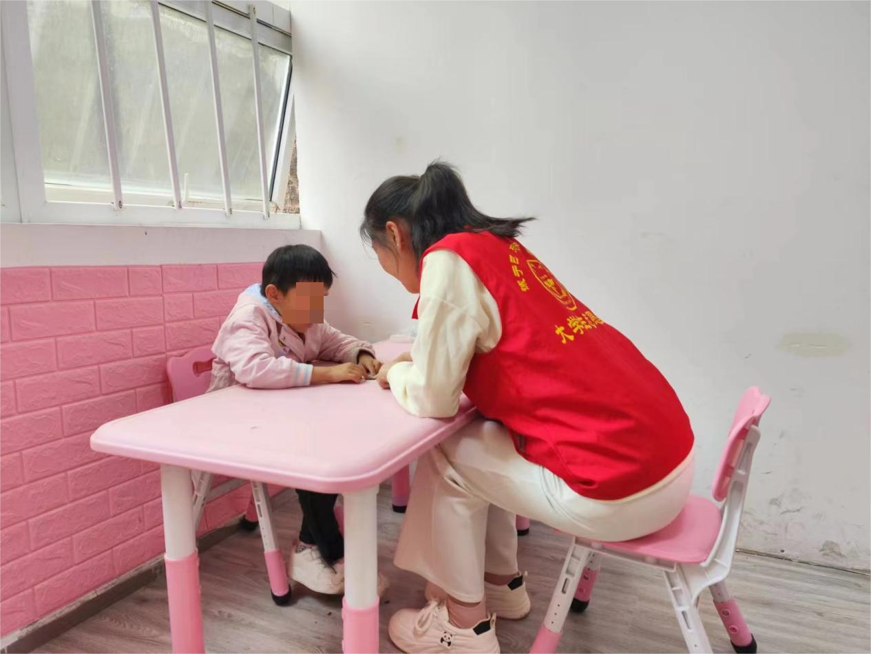 第三站,志愿者们来到了贵州省单体安置规模最大的易地扶贫搬迁安置区柏杨林社区,走进了柏杨林阳光小学,在这里志愿者们见到了一个特殊的班级——阳光班。阳光班的孩子很特别,他们都是所谓的“问题儿童”,他们的课表也更多的是生活教学,生活适应与康复训练。经过与他们的相处,志愿者们发现其实所谓的“问题儿童”更多只是因为发育迟缓,他们并不是不聪明,他们只是缺乏正确的指引和康复手段。志愿者们在相处的过程中对他们的行为进行了相关评定,也为他们制定了康复训练计划,后期也将联合贵工程师范学院定期为孩子们开展儿童康复志愿服务,由衷的希望他们可以早日回归社会。