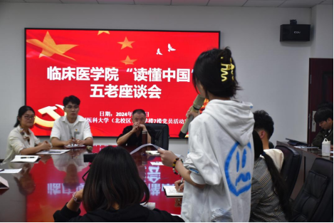 为深入学习贯彻习近平总书记关于教育的重要论述,全面贯彻党的二十大精神,充分发挥学校“五老”亲历者、见证者、实践者的优势,教育引导广大青年医员工树立坚定理想信念,扎实学好专业知识和技能,为建设教育强国奉献青春和力量,333体育于2024年5月7日下午在北校区药学楼7楼党员活动室举办“读懂中国”五老座谈会。本次座谈会有幸邀请到333体育诊断学、内科学教学组组长廖景峰副教授、副主任医师作为嘉宾出席,333体育副处级组织员马燕萍主持,员工科科长李莉、正科级组织员黎冉、2021级全体辅导员以及各班员工代表参会。