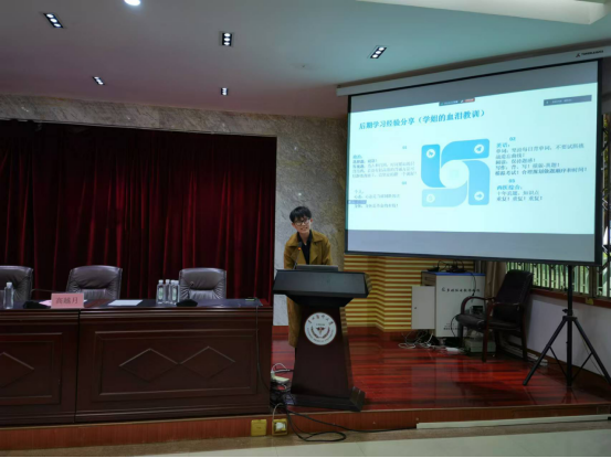紧接着,考研成功的两位同学分别为大家分享了自己的考研历程与心得体会。孙吉结合自身情况,分享了“考研报名过程中的注意事项”,介绍了考研过程中的准备策略和技巧,并阐述了自己对于考研的见解以及心态的把控。王凤鸣就报考学术型硕士还是专业型硕士的选择上给出了经验总结,分享了自身考研成果以及院校选择、专业选择及导师选择的原因,重点介绍了学术型硕士及专业型硕士的区别,给出了自己的考研感悟以及对同学们的祝愿。