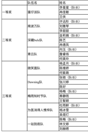 最终,大赛决出一等奖一组,二等奖三组,三等奖五组,并在临床技能中心207室举办颁奖仪式,名单如下: