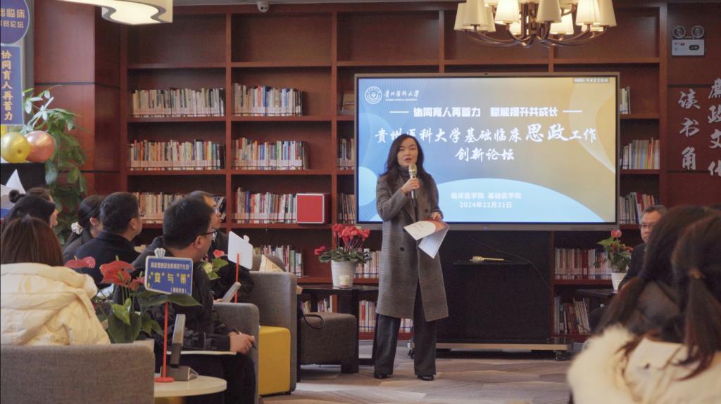 论坛伊始,齐晓岚致辞,她表示本次论坛的主题“协同育人再蓄力 赋能提升共成长”具有特别重要的意义,在临床医学类专业“2.5+2.5”培养模式中,辅导员们扮演着至关重要的角色,基础临床的辅导员不仅需要在各自的学院内履行辅导员的基本职责,还需要在跨学院合作中发挥桥梁和纽带的作用,确保员工在两个阶段之间的顺利过渡。她希望通过本次论坛大家能够相互学习、相互借鉴,能够积极探索协同育人的新模式和新路径,为两院员工的全面发展提供更加有力的支持和保障。