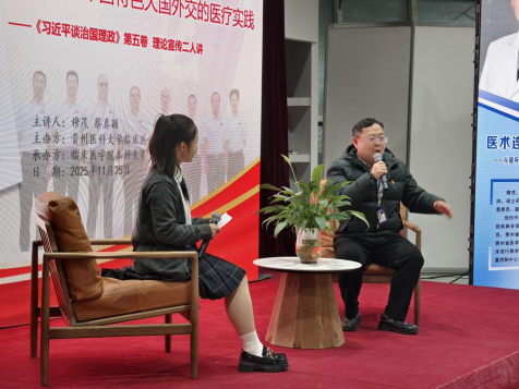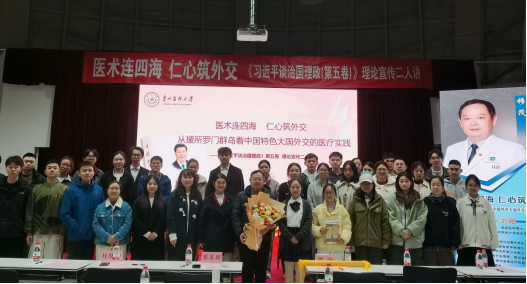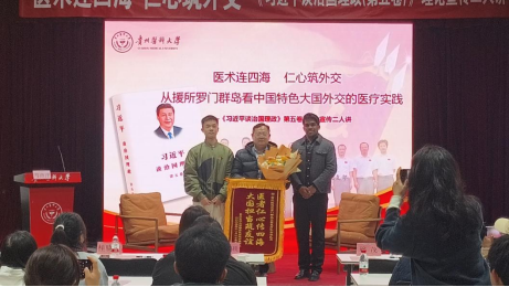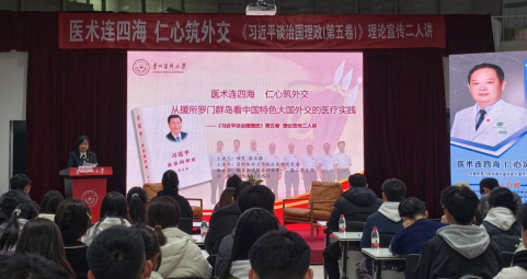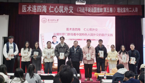 本次活动特设弹幕评论与提问环节,师生通过线上平台实时互动,畅抒感想、踊跃提问,营造出热烈的交流氛围,将学习热情推向高潮。现场举行了致敬援外医疗队员仪式,并向参与互动的幸运同学赠送理论学习书籍,激励大家将理论融入日常、学思践悟。