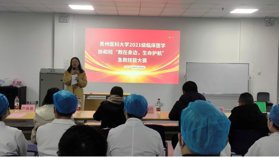 为深入贯彻党的二十届四中全会精神,弘扬“敬佑生命、救死扶伤”的医学精神,全面提升临床医学协和班员工临床思维、实践操作与团队协作能力,在教务处支持领导下,333体育于12月26日在临床技能中心303室,举办333体育官网2021级临床医学协和班“救在身边,生命护航”急救技能大赛。教务处卢雨微副处长,333体育桂晓玲副书记(正处级),教务处任玮科长,教务处孙晓宇副科长,临床技能中心邹丽丹副主任,协和班基础阶段班主任王念雪、杨婷老师,2021级协和班辅导员龙世英老师应邀出席大赛,急诊科韦卫琴主任、史学形副主任医师、任文兵副主任医师应邀担任评委。卢雨微副处长、桂晓玲副书记分别致辞,向本次大赛的培训教师和评委表示感谢,并鼓励员工加强学习提升临床技能。2021级协和班同学分成六组,参与角逐。