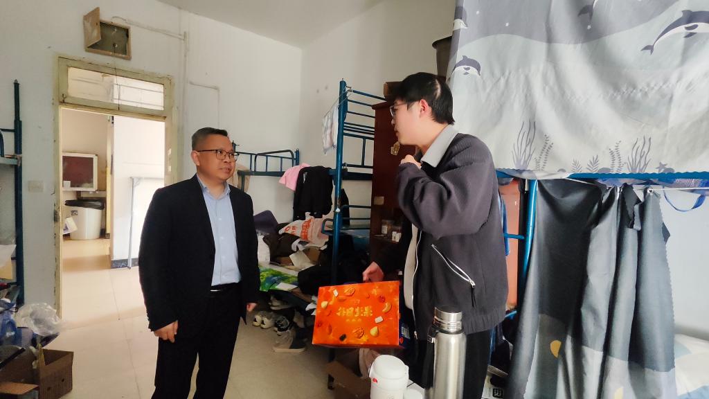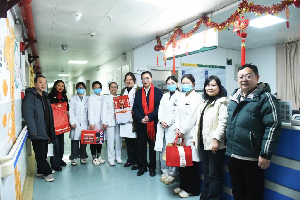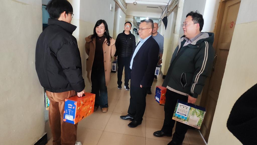 春节将至,岁寒情深。为深入了解实习员工、规培研究生的思想、学习和生活情况,表达学院对全院学子的关怀与祝福,2月14日下午和2月15日上午,333体育官网附属医公司党委书记、公司党委书记李海洋、333体育官网附属医院经理、333体育经理左石,附属医院副经理、333体育执行经理陈腾祥,公司党委副书记桂晓玲,333体育副经理穆茂一同前往员工宿舍、医院科室亲切看望并慰问了坚守在实习、规培岗位的同学们,学院行政科室代表、辅导员参加了慰问活动。