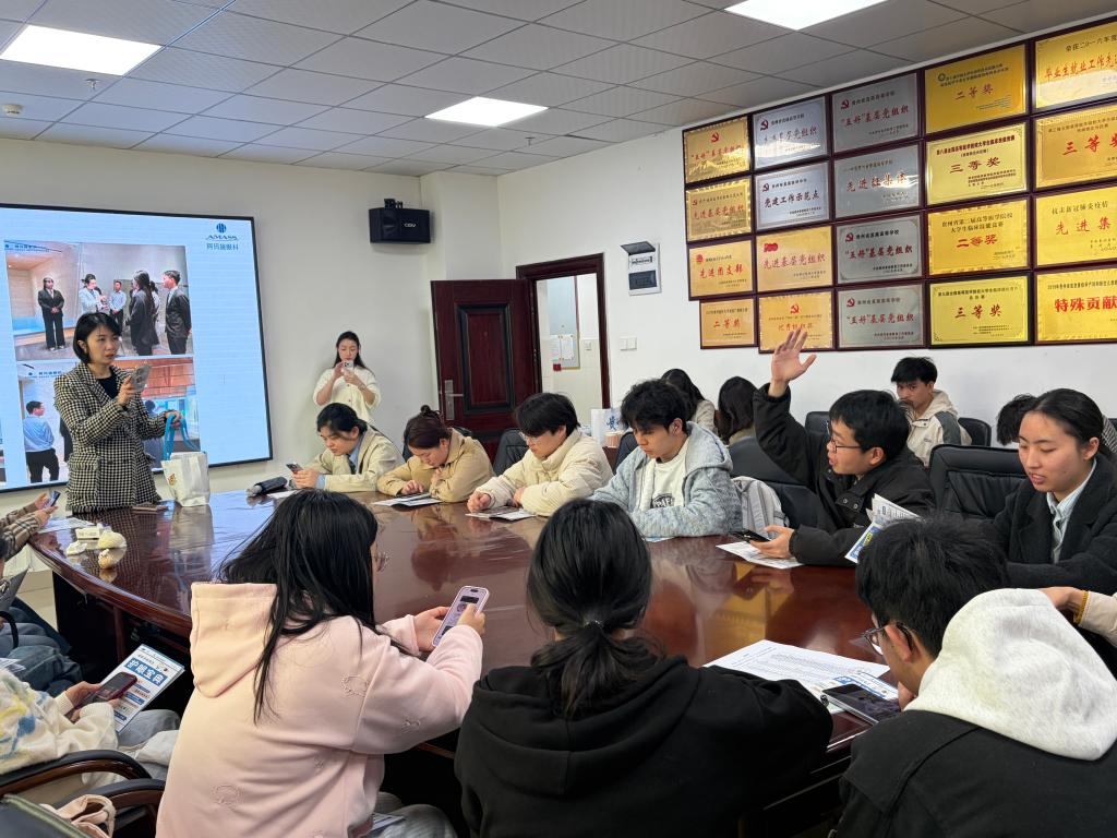 互动环节中,同学们围绕岗位职责、职业发展路径、薪酬待遇等问题踊跃提问。潘腾宇逐一解答,并表示医院注重应届生培养,提供完善的岗前培训和晋升通道。
